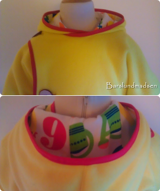 Så blev jakken til min niece færdig, den er i den grad gul og bare super fin, med det skønneste graziela stof som foer i hætten og som lomme...